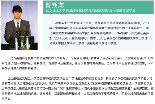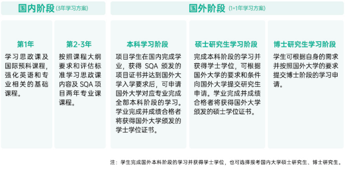 该项目学生在国内学习期间,同时在中国(教育部)留学服务中心和英国苏格兰学历管理委员会双重注册。