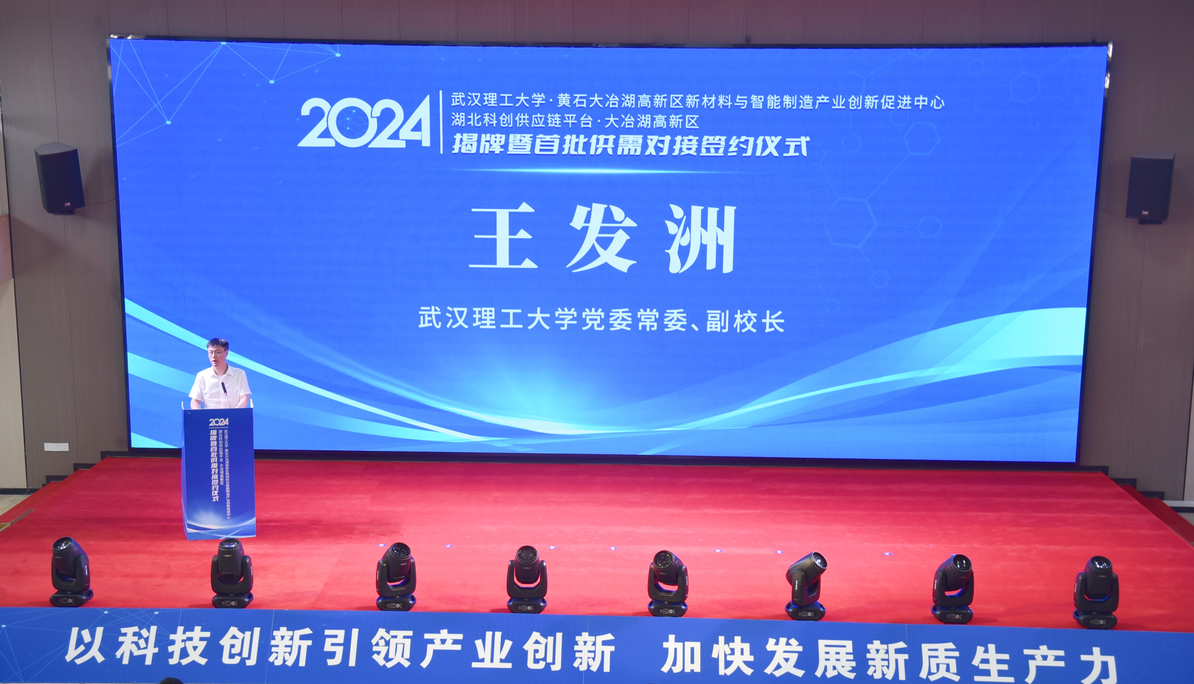 大会上,王发洲代表学校致辞,向黄石市各级政府长期以来对学校建设发展的关心和支持表示感谢,他指出,黄石市、大冶湖高新区的主导产业与学校学科建设方向高度契合,此次市校共建的新材料与智能制造产业创新促进中心,是双方在学科建设、人才培养、产业升级等方面共享共建共赢的突破之举。学校将进一步创新体制机制,加强资源供给和人才支撑,强化与政府企业的沟通交流,携手做好科技联合攻关项目,共同推进中心高水平发展。