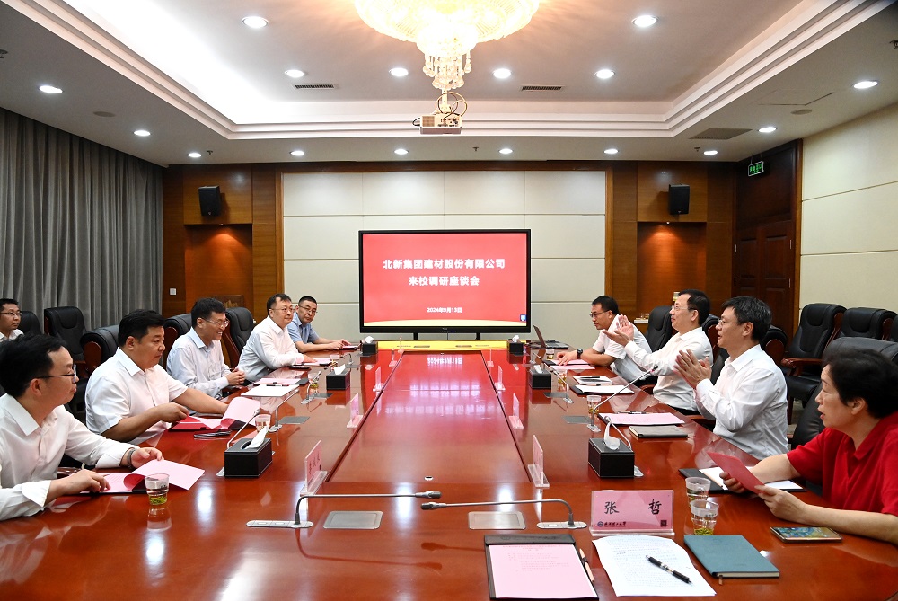 9月13日,北新集团建材股份有限公司董事长薛忠民一行来校调研交流。北新集团建材股份有限公司党委书记、总经理管理,副总经理杨正波、任利,校党委书记信思金,中国工程院院士姜德生、张联盟出席相关活动,副校长王发洲主持会议。