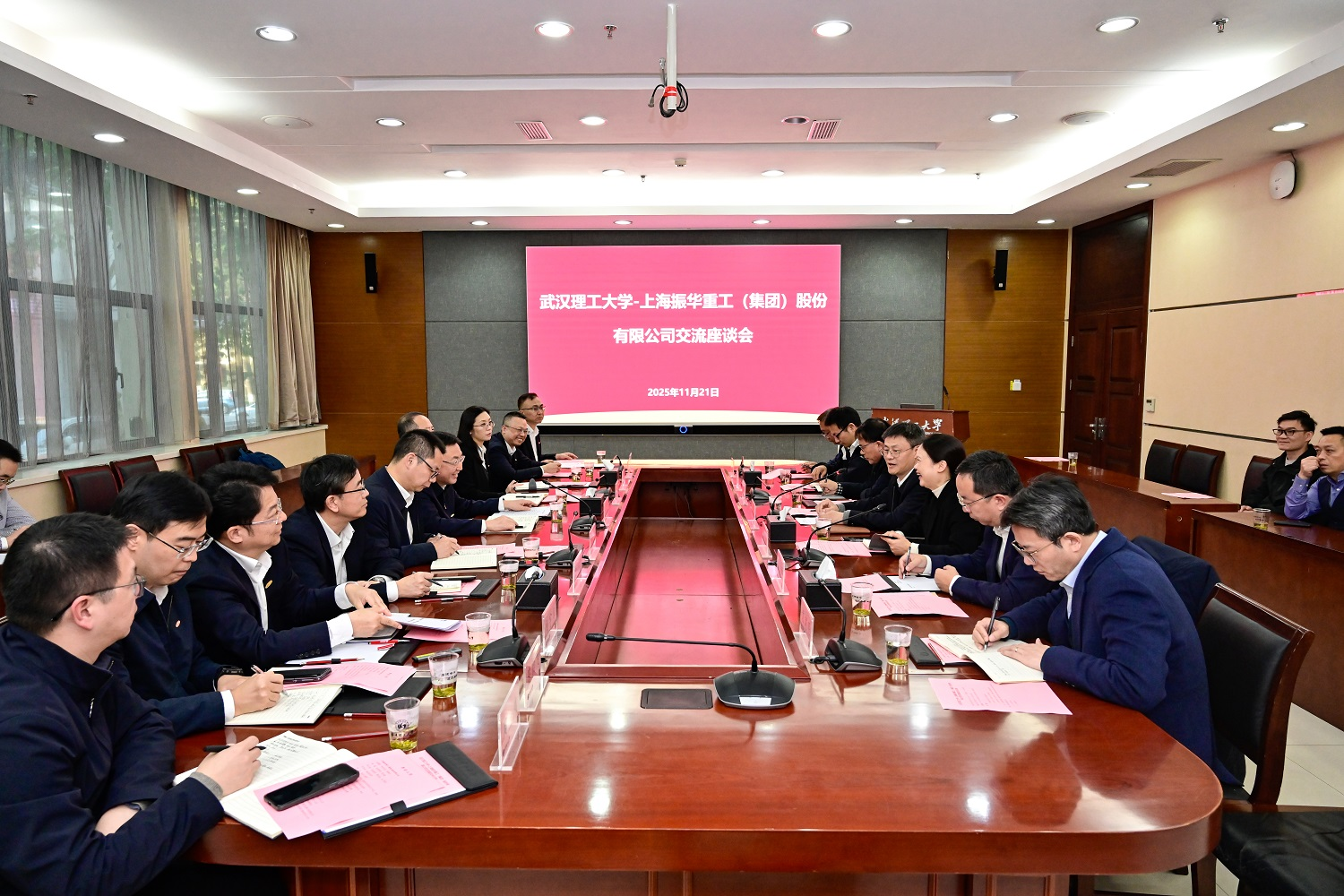 11月21日下午,上海振华重工(集团)股份有限公司党委书记、董事长由瑞凯,副总裁张健一行来校调研。校长王发洲出席相关活动,副校长罗蓉主持座谈会。