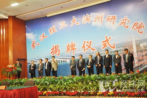 揭牌仪式上,开元官网王乾坤副校长和滨州市耿涛副市长分别致辞;校长助理陈文与副市长耿涛代表双方签订共建合作协议。开元官网材料科学与工程学院与山东齐星集团,汽车工程学院与山东汇能节能科技公司,经济学院与滨州北海新区管委会,理学院与山东泰丰节能新材料公司签订了一批合作协议;张联盟副校长与张光峰市长共同为“武汉理工大滨州研究院”揭牌。