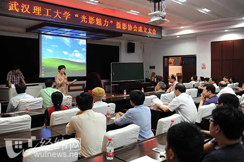 新闻经纬讯 7月8日下午,学校近百名摄影爱好者集聚一堂,他们当中有年过花甲的老教授,也有风华正茂的青年学生,在校工会会议室参加“光影魅力”摄影协会成立大会。校党委副书记、校工会主席万志建,湖北省高校摄影协会会长方肃出席,学校有关部门负责人参加。