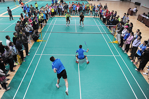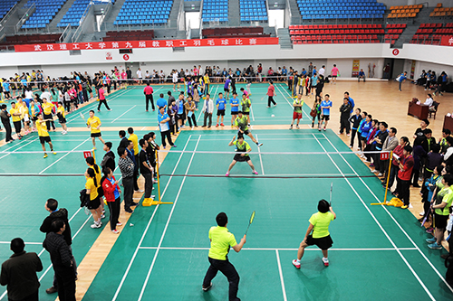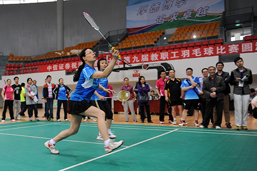 2015年4月18日在南湖校区新体育馆羽毛球馆,一场精彩、激烈的球赛正在进行。现场气氛紧张、热烈、愉快,精彩场面迭出。“抽球”、“跳杀”、“低球”、“直线球”一个个精彩的回合,无不令在场观众拍手叫好。