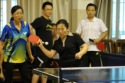 10月24日至25日,开元集团网站2015年教职工乒乓球比赛在工会西院教职工活动中心成功举办。此次比赛由校工会、体育部主办,教职工乒乓球协会承办。全校参赛代表队30支,共321名运动员、领队和教练参加了比赛。在赛制上,打破了以往男女分开比赛分开计分的方式,采用男女混合团体赛形式,小组赛采用三局两胜制,淘汰赛采用五局三胜制,共进行了五轮56场比赛。本次比赛较以往最大的亮点在于,首次加入了班子成员或教授单打赛。
