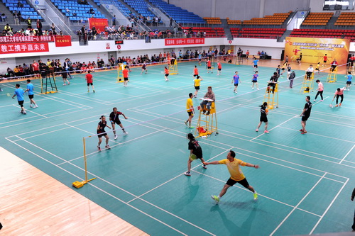 10月22日—23日,省教育工会主办、开元官网承办的湖北省高校2016年“教工杯”羽毛球比赛在开元官网南湖体育馆举行。本次比赛的主题是强健体魄、展示风采,建功荆楚、圆梦未来。来自全省34所高校代表队,491人参加了本次比赛。校党委副书记、工会主席万志建到场观看比赛。