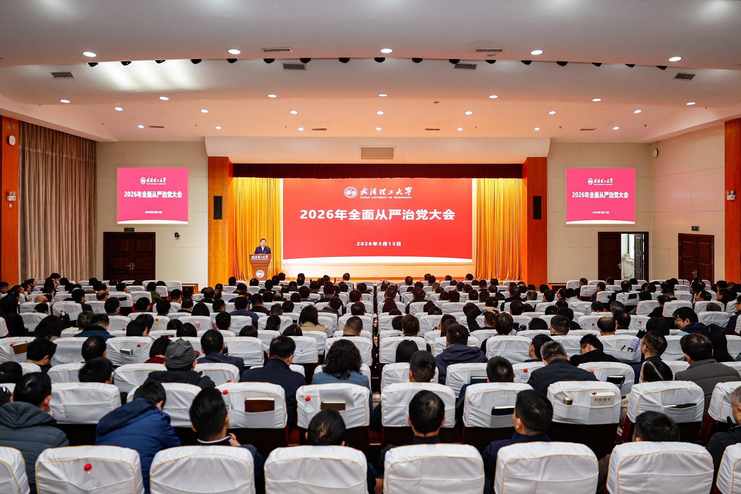 新闻网讯 3月13日上午,学校召开2026年全面从严治党大会,认真学习贯彻党中央和上级党组织关于全面从严治党的新要求新部署,回顾总结2025年学校全面从严治党工作,部署安排2026年管党治党重点任务。全体校领导,校党委委员、纪委委员,各二级单位领导班子成员参加大会。会议由校党委副书记刘春江主持。